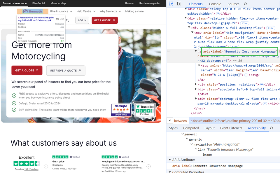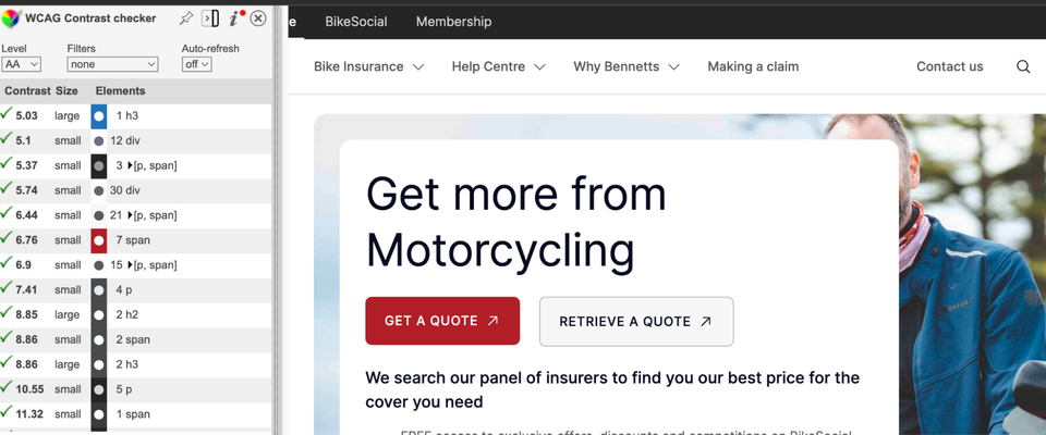 The above screenshot is from Bennetts, our client, who asked us to take care of accessibility on their website.