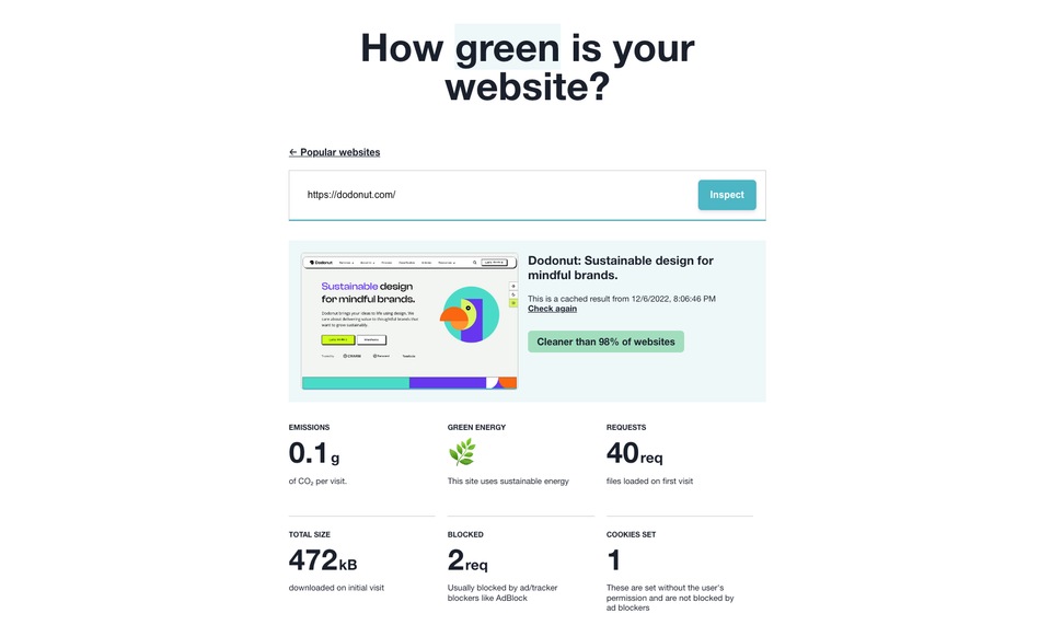 Cabin helps users stay more cautious about the website's carbon footprint by measuring each page's CO₂ usage over time. In the dashboard, they highlight high-energy-consuming pages and provide insights and improvements to be made. The tool homepage provides a website carbon calculator to inspect each website to estimate its carbon footprint and energy impact.