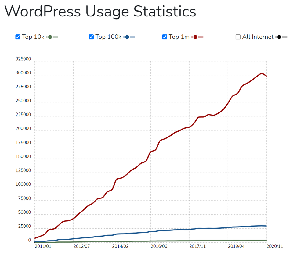 WordPress demands constant maintenance and management, which becomes time-consuming. Both the platform and the plugins are frequently updated, independently of each other. As we have already stated, these updates are important to keep your website secure, so it’s worrying that half of the WordPress websites still run on older versions making them vulnerable.