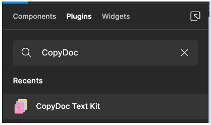 2) Find the CopyDoc Text Kit plugin in Figma and install it.