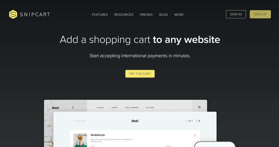 Snipcart is a fantastic eCommerce solution that lets you add a shopping cart to any website and convert it to an eCommerce in a matter of minutes. Best of all it doesn’t matter what platform a website is built on (it works with Jamstack websites exceptionally well).