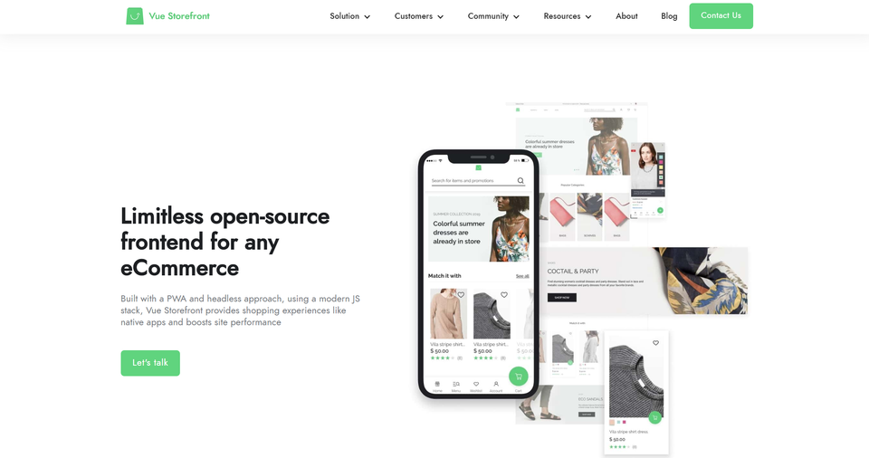 Thanks to their Storefront based on Vue.js you can create fantastic mobile-first stores that are fully customizable. Every component has a set of slots that you can customize and replace with your own material - images, icons, custom HTML markup, you name it! The Storefront UI is compatible with Google UX Playbook for retail.