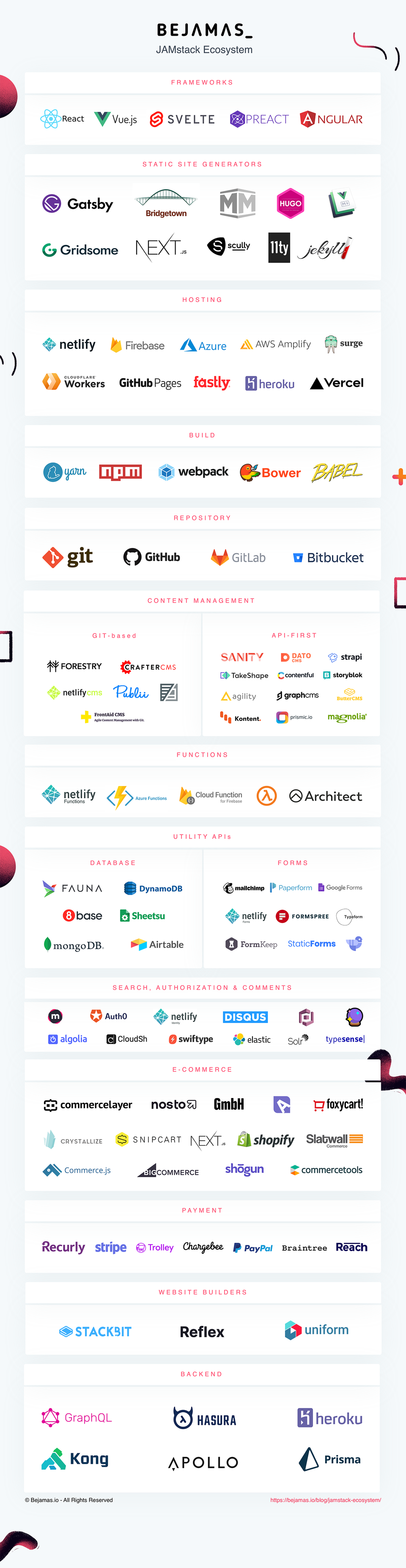 Second, the Jamstack tools thing is just for naming purposes. In that sense, the frameworks are tools, and headless CMSs, and static site generators, and utility APIs, etc.