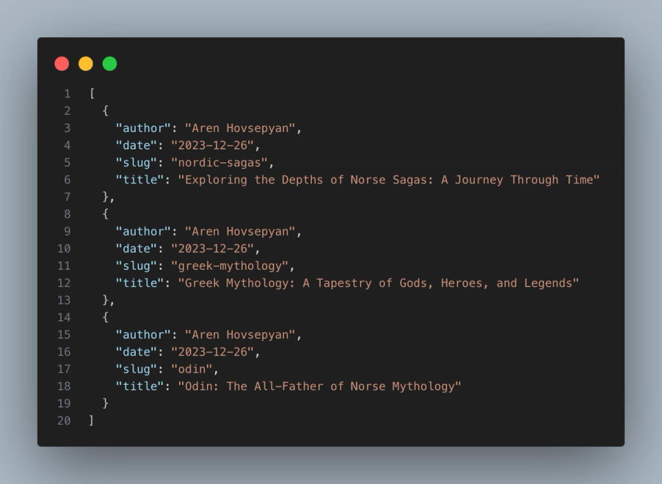 main();To handle requests that will later come from our UI and allow users to interactively search certain posts, we need to create a JSON endpoint in Astro. This endpoint will be responsible for handling the search requests and providing the necessary data.
