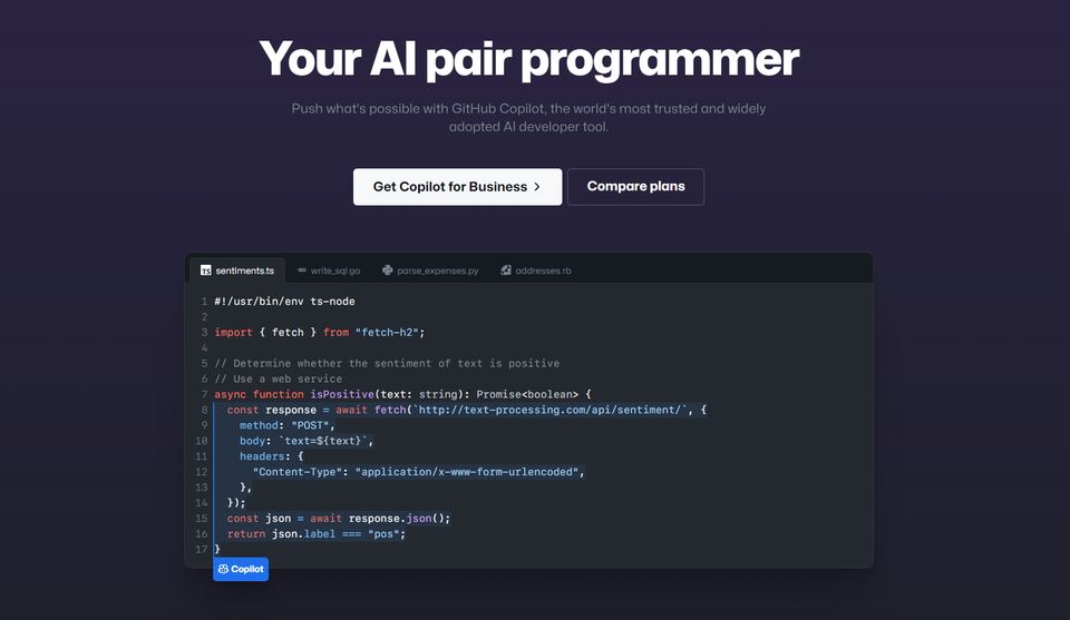 GitHub Copilot is a visual studio code extension developed by GitHub. It acts as an AI pair programmer that suggests code based on the existing codebase. It uses OpenAI codex, a deep learning system trained on billions of lines of code to suggest code.