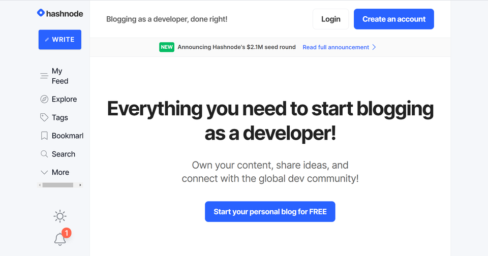 Hashnode is a community where you can discuss your tech concerns and get introduced to so many developers out there. While the concept and targeted audience is somewhat similar to the above, you do have an option to use their platform for a blog on a custom domain and still make use of their canonical URL option as well i.e. reach a new audience without jeopardizing original posts’ chances to show in Google. In my view, it boils down to personal preference.