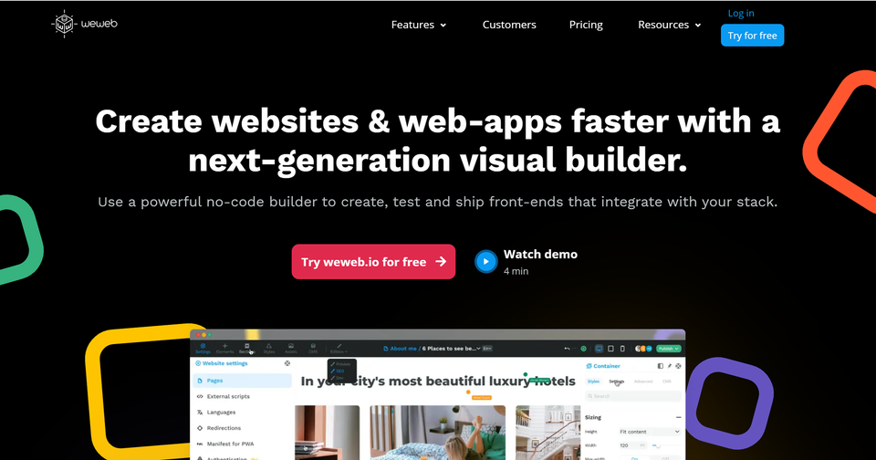 WeWeb is the new kid in town. It is basically a low-code Jamstack website builder and as such an interesting solution. It is equipped with a drag and drop editor to build the front-end and it integrates with GitHub to add your own vue.js / react components if you want.