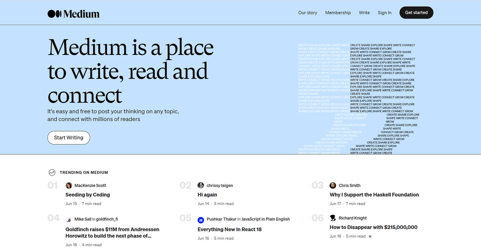 Simple import tools for your content from pretty much anywhere. You can reach a new audience with your writing as Medium shares your writing within its community. You can run your publication or even a company blog there.