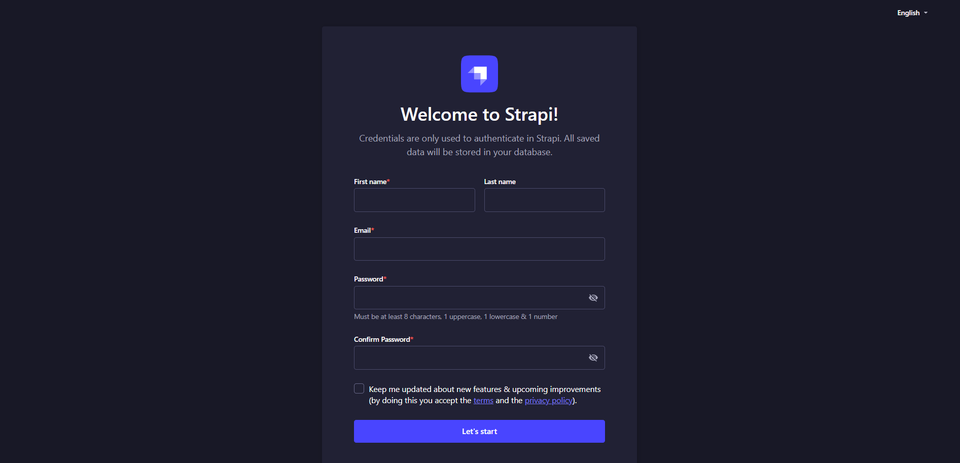 npx create-strapi-app "your-backend-app-name"and enable the recommended Quickstart configuration.
