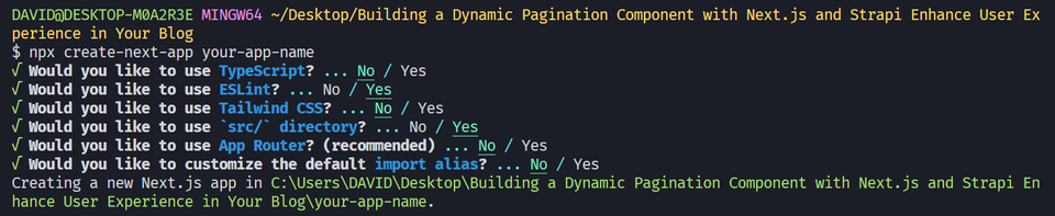 To begin building your dynamic pagination component, install Next.js and Strapi on your development machine using npm (Node Package Manager).