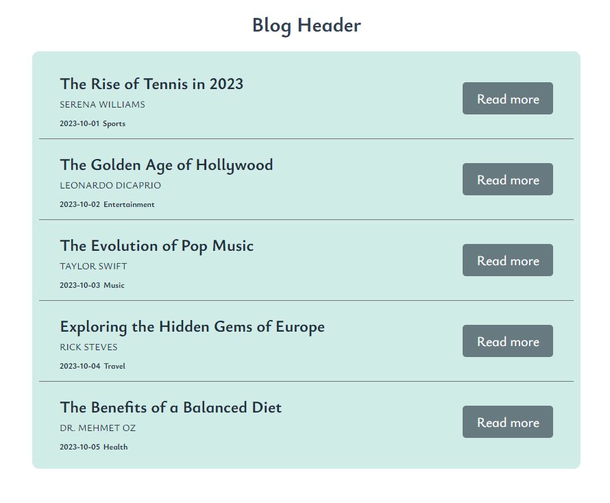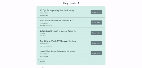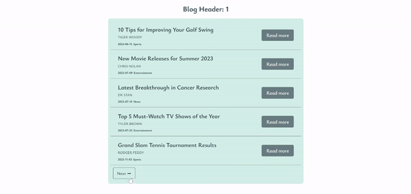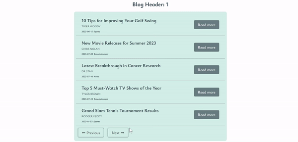 }Next, create a pagination component which takes in the blogs object, maps over it and renders the data on the interface.