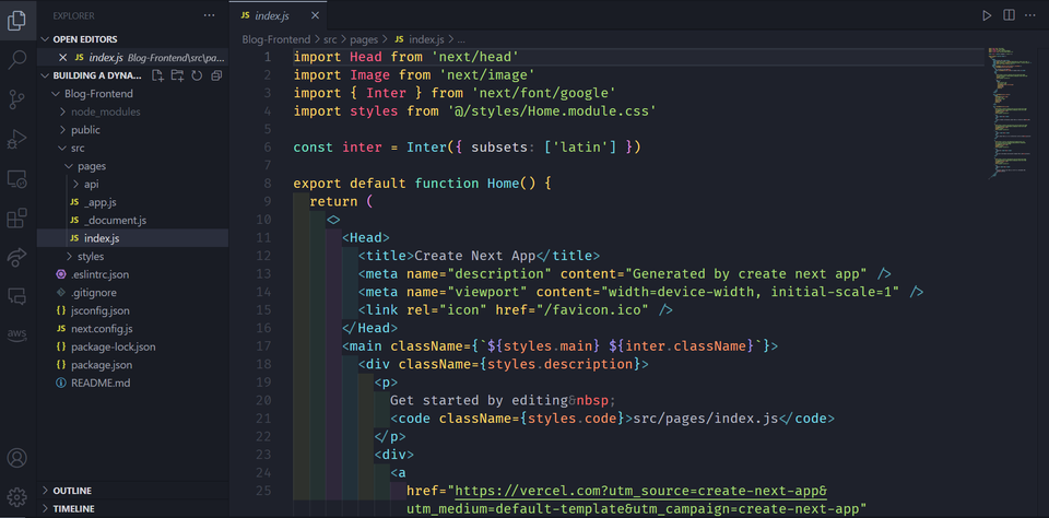 After the above installations, you can create a next app using the CLI or your code editor’s terminal. In your preferred terminal run: