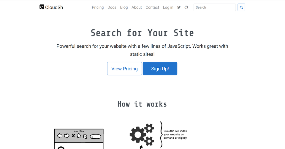 CloudSh is another search-as-a-service provider that offers a powerful search engine for your website with only a few lines of JavaScript.