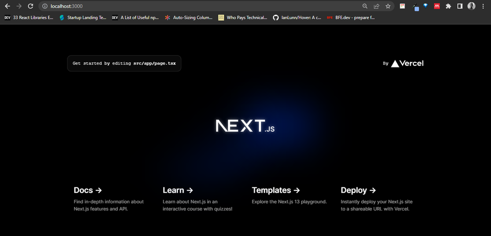 npm run devThe application gets assigned localhost:3000 by default. Open it in your browser to see what we’ve got.