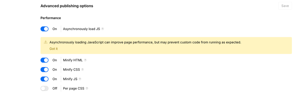 Webflow offers a few simple toggles under Project Settings → Hosting → Advanced Publishing Options that can make a real difference. Some help. One can hurt.
