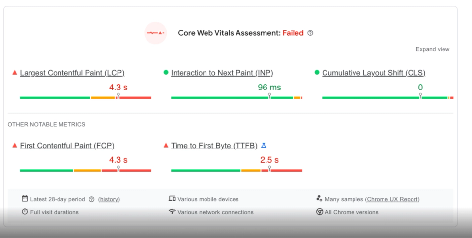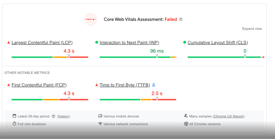 This guide walks through the key areas that matter most. Not a list of generic “speed tips,” but the real, technical levers that make measurable difference—from image formats and font loading to the TTFB issues that no on-page tweak can fix.