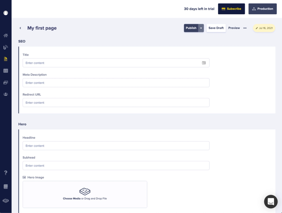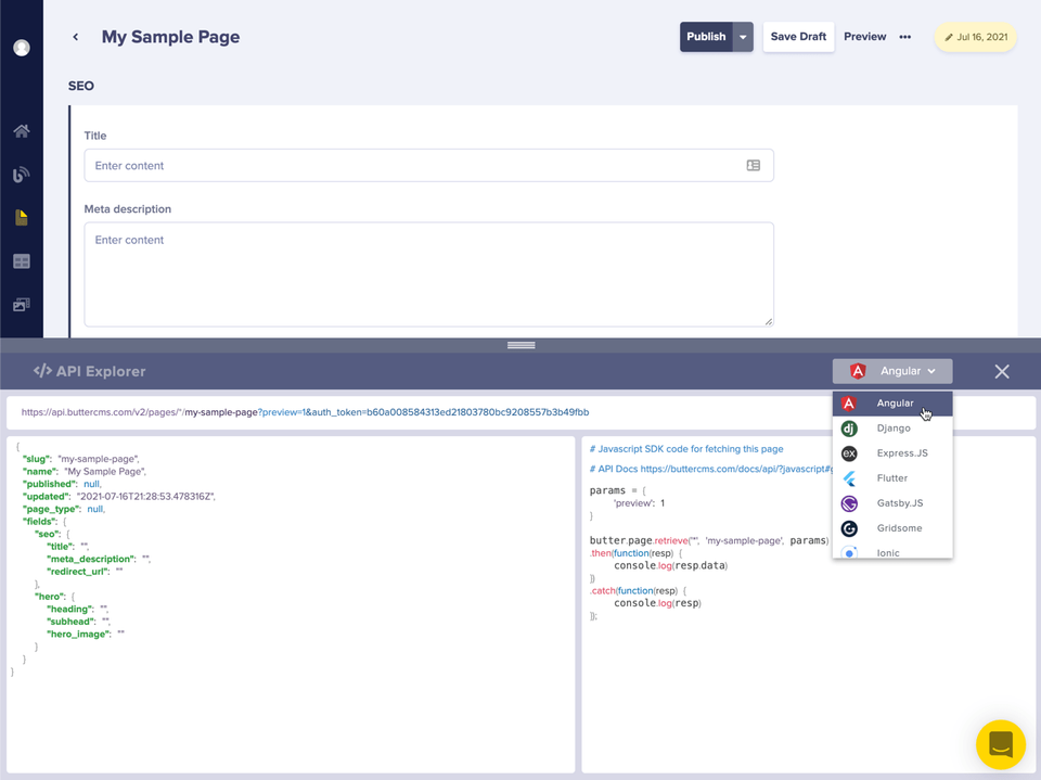 ButterCMS comes with a robust and reliable Media Library that helps you to store and distribute all your media content. You don’t have to have your own image hosting or configuring a complex CDN. Their media library supports all file types and provides a fast and efficient experience for your content editors and your end-users.