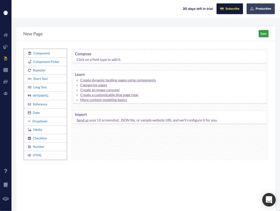 You can compose flexible page layouts and easily reorder them with ButterCMS’ Components. Instantly. Without developers or IT department.