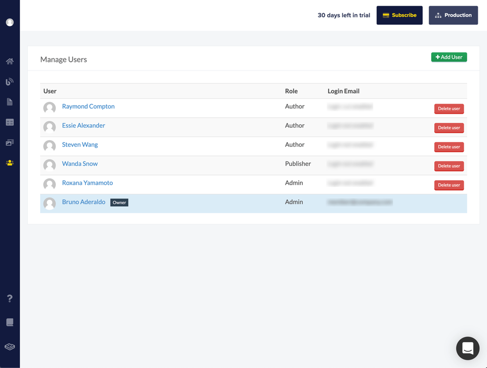 You also can set roles and permissions for them. Right now ButterCMS has three roles: Admin, Publisher, and Author. But you can chat with them to discuss Enterprise options if you need a custom role.