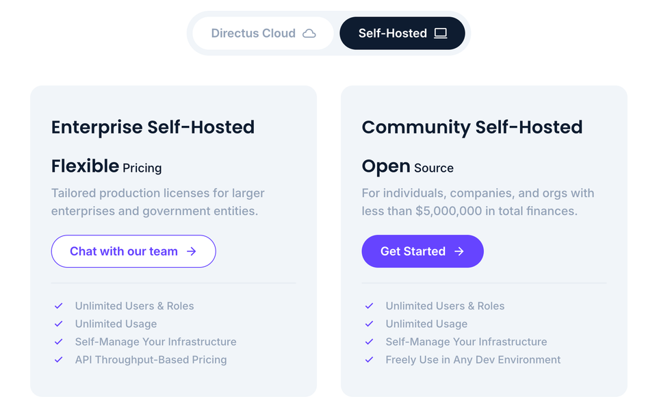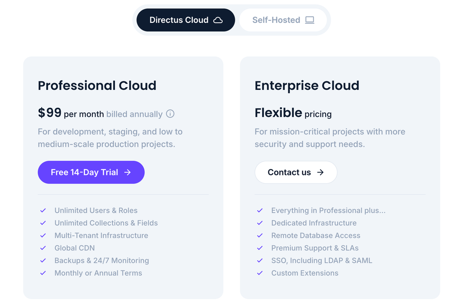 You can self-host Directus or use one of their cloud plans.