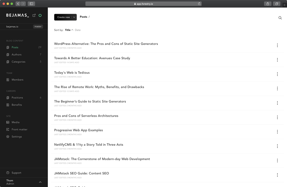 Forestry is definitely one of the most popular commercial Git-based CMSs. If you are not sure what's the difference between API and Git CMS, we wrote an article explaining the details.