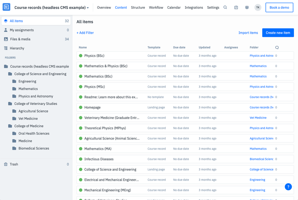 GatherContent is a great CMS for large content teams when you don't need a lot of customization. It doesn't offer custom field types like a color picker. You won't build dynamic layouts. But if you have thousands of posts and other content formats across dozens of people, GatherContent will do the job.