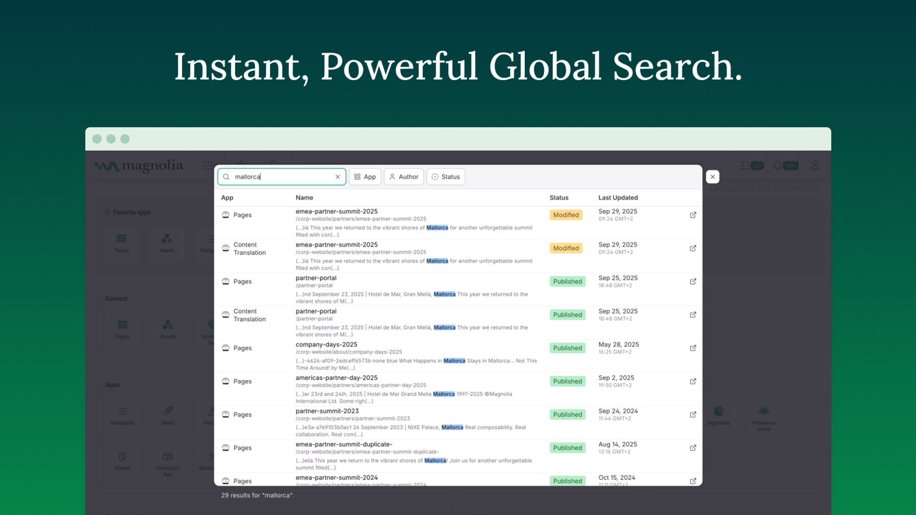 Magnolia is the world’s leading composable Digital Experience Platform, with over 450 enterprise customers, thousands of Community Edition deployments, and more than 200 certified Magnolia Partners around the world.