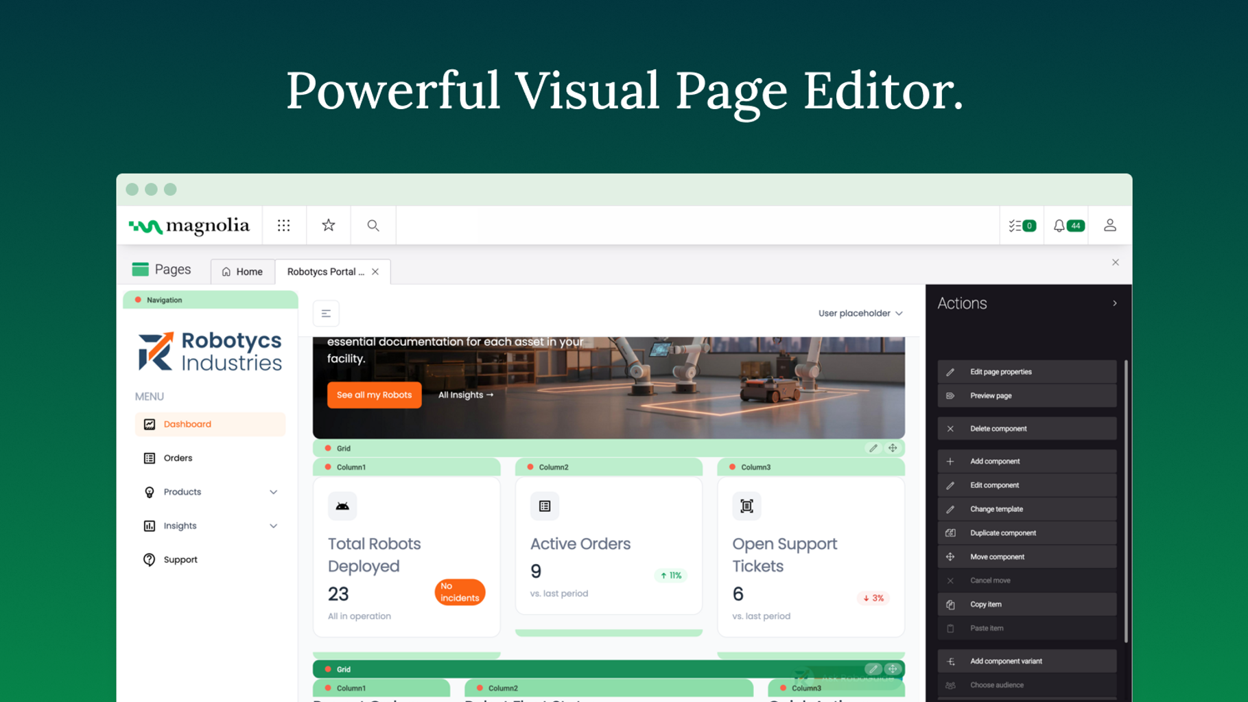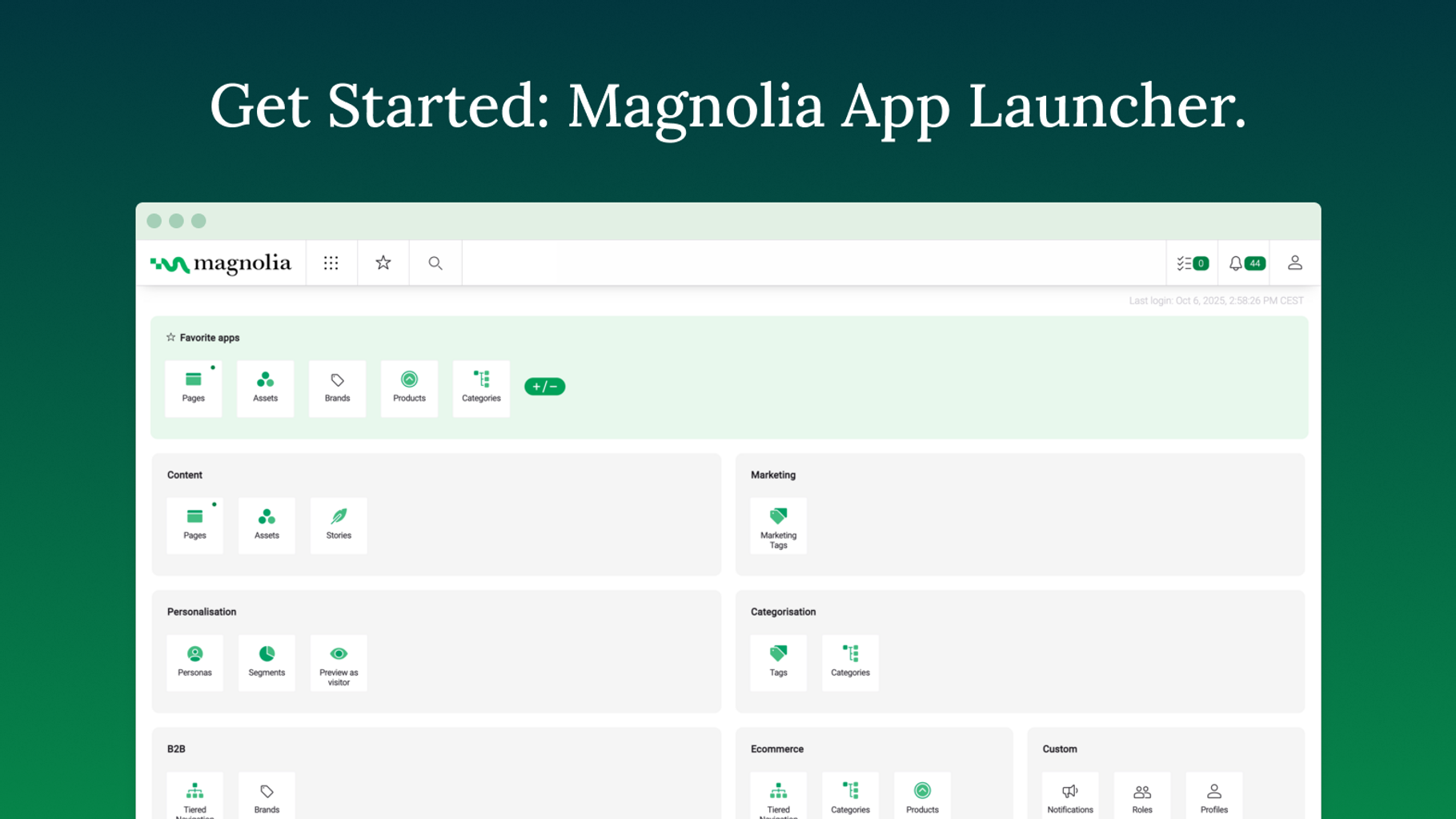 Founded in Switzerland in 1997, Magnolia puts you first with a business-ready composable DXP that fits your unique digital delivery pipeline and accelerates your business outcomes. With a track record of 100% project success, Magnolia understands that each customer’s use cases are unique. Create a truly composable business by connecting every legacy and headless system. Streamline the way teams work with intelligent workflows and a full array of templates and blueprints. And provide a unified authoring experience that empowers every business user to get fast, personalized experiences live regardless of tech stack—ecommerce, PIM, marketing automation, analytics, or even content from other content management systems.