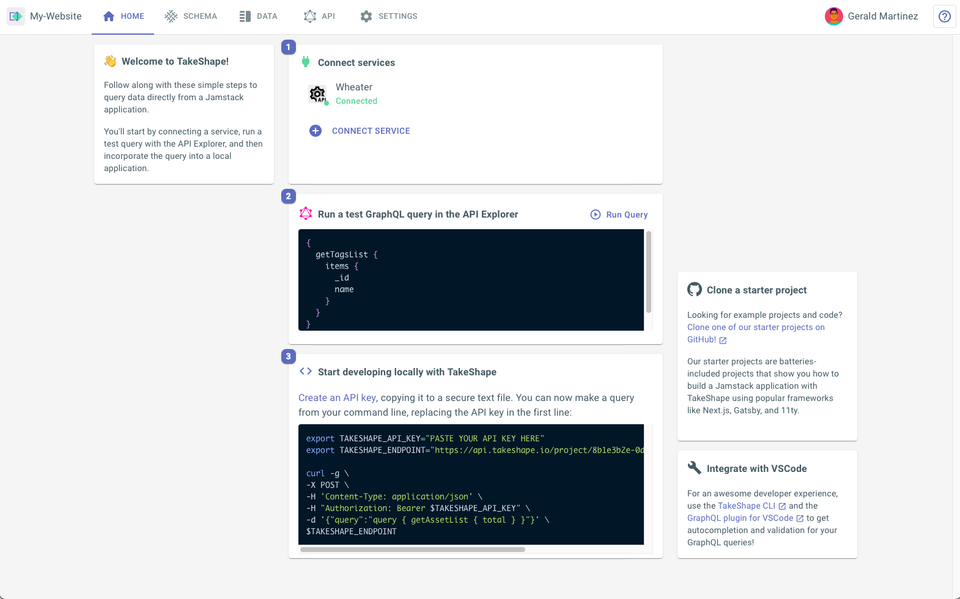 They define themselves as The API Mesh for the Jamstack and, I think that describes perfectly what TakeShape does; as I mentioned before, you can combine all your services into one by using it. You can manage the services with the CLI, where you can decide the shapes and queries that you like to expose in the GraphQL API. You can learn more about it here.