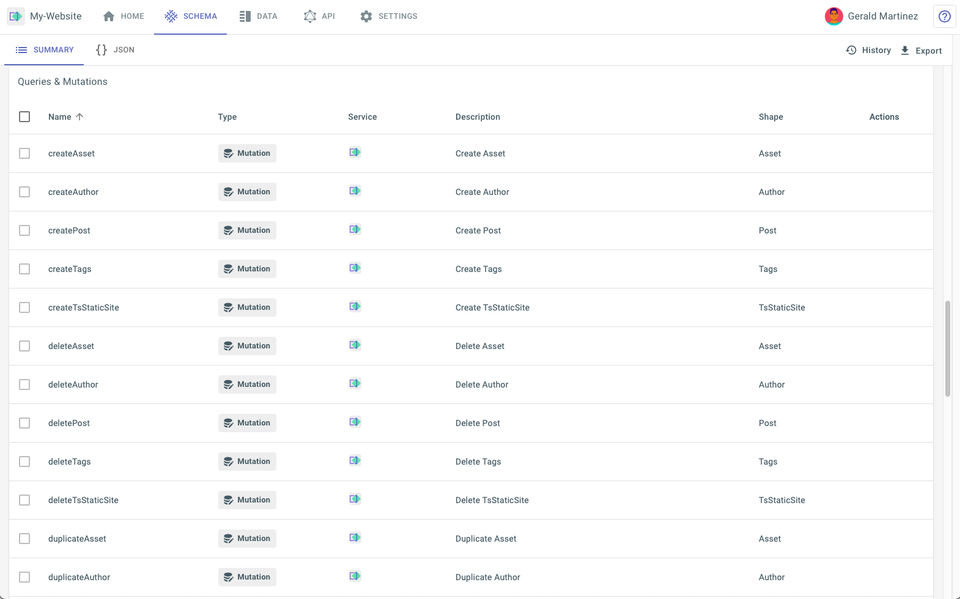 Here is where you can manage your services, shapes/model, and your queries and mutations. You can drag and drop to organize your data model. Take a look at the images below: