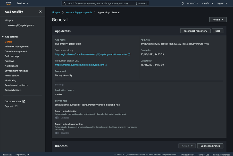 This is one of the first steps when you're trying to deploy an example Gatsby app. Why dark or light mode if you can have both at once? But joking aside, AWS UI is bad. It has many glitches, it's not very intuitive, and it's hard to manage. Don't get me wrong. AWS is a powerful cloud platform, it has dozens of different products, but it misses a good UX team.