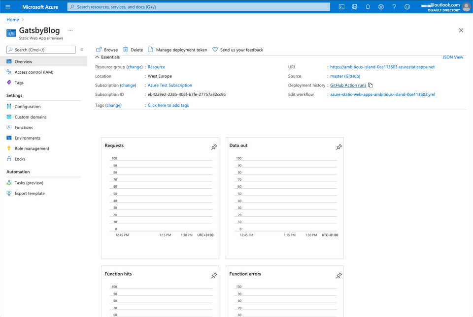 The Azure Static Web Apps Dashboard UI, while appearing somewhat intricate at first glance, adheres to the Azure design philosophy. It exudes a robust, professional feel characteristic of enterprise-grade software.