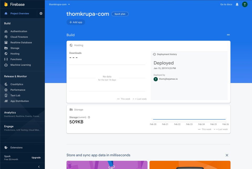 Hosting vise, you can use their Cloud Storage option, but here we are more interested in Firebase, a mobile app dev platform often labeled as backend as a service, which is built to help you host a single-page web app, a mobile app landing page, or a progressive web app without the hassle.