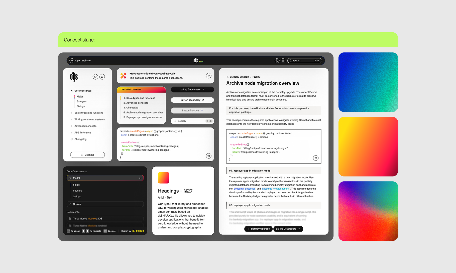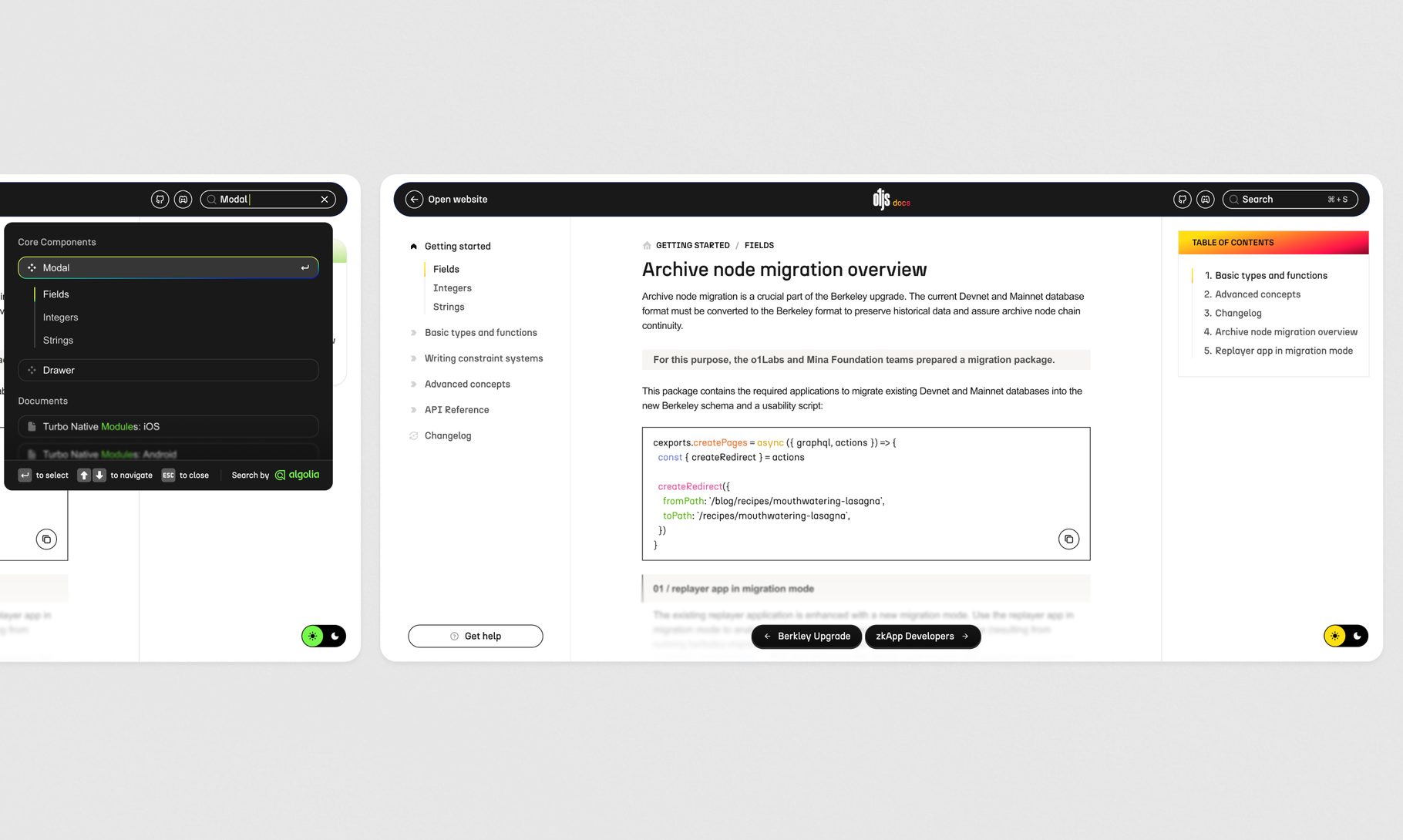 For tools like O1JS, documentation shapes the developer experience as much as the library itself. By creating a clearer structure, improving search, and updating the visual system, we reduced friction and made it easier for developers to get real work done. The result is documentation that supports learning, everyday use, and long-term adoption.
